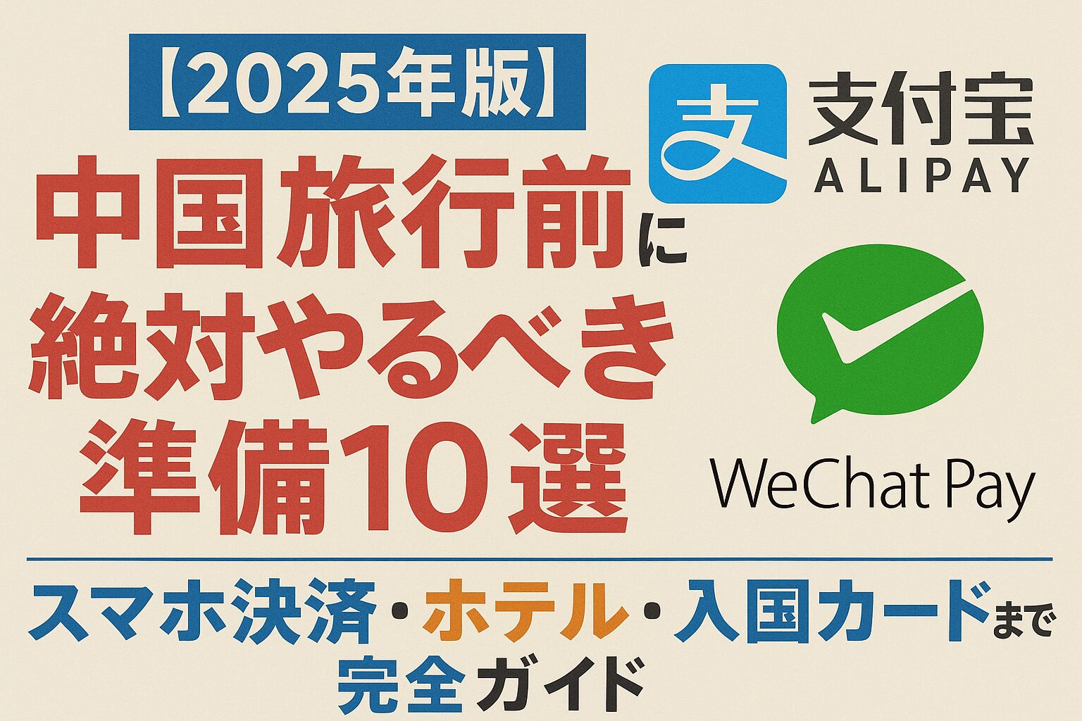 中国ではスマホ決済が事実上の標準です。出発前に以下の手順を完了しておく必要があります。