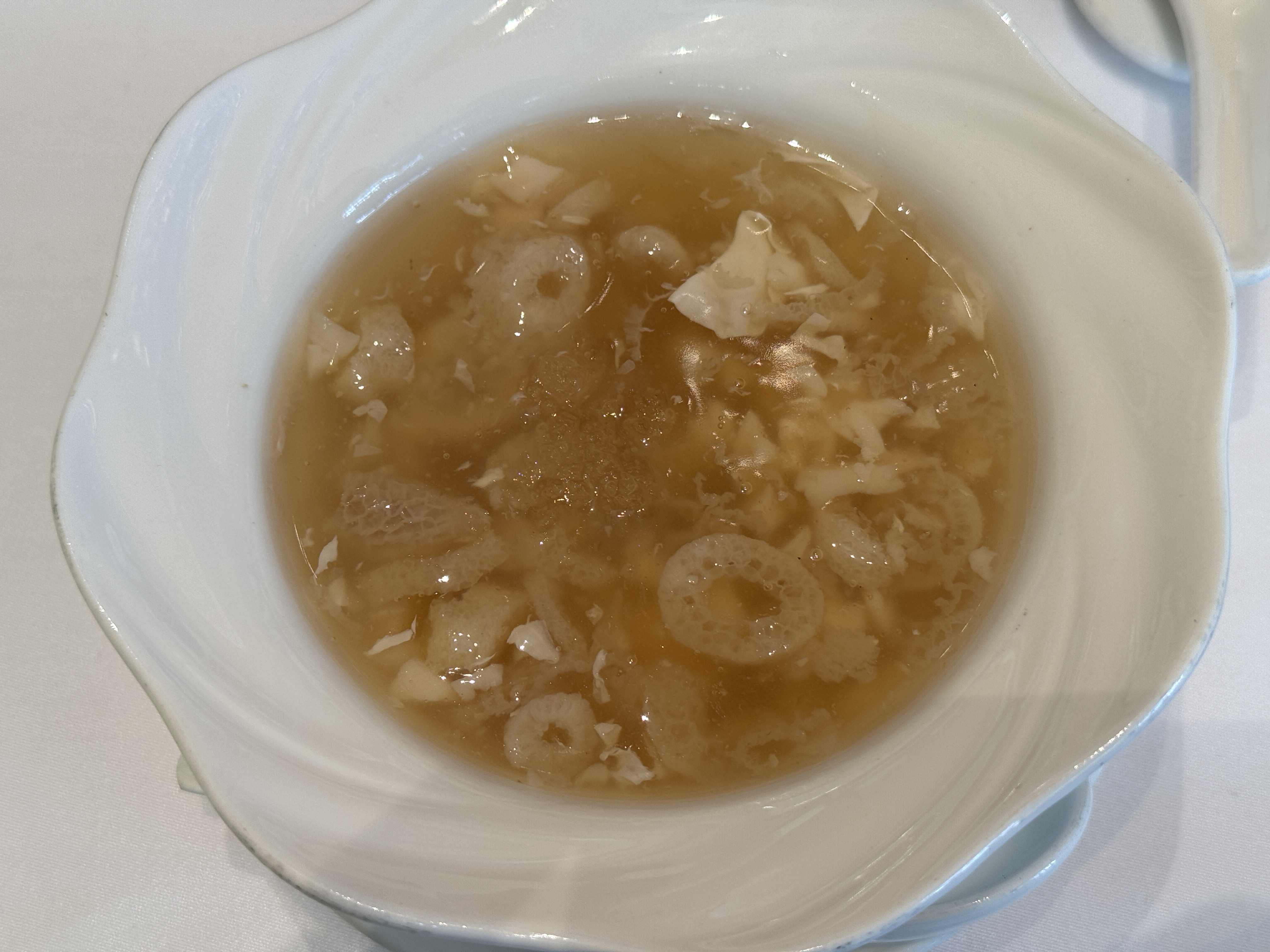 - 雪燕とキヌガサダケ入りのホタテのスープ