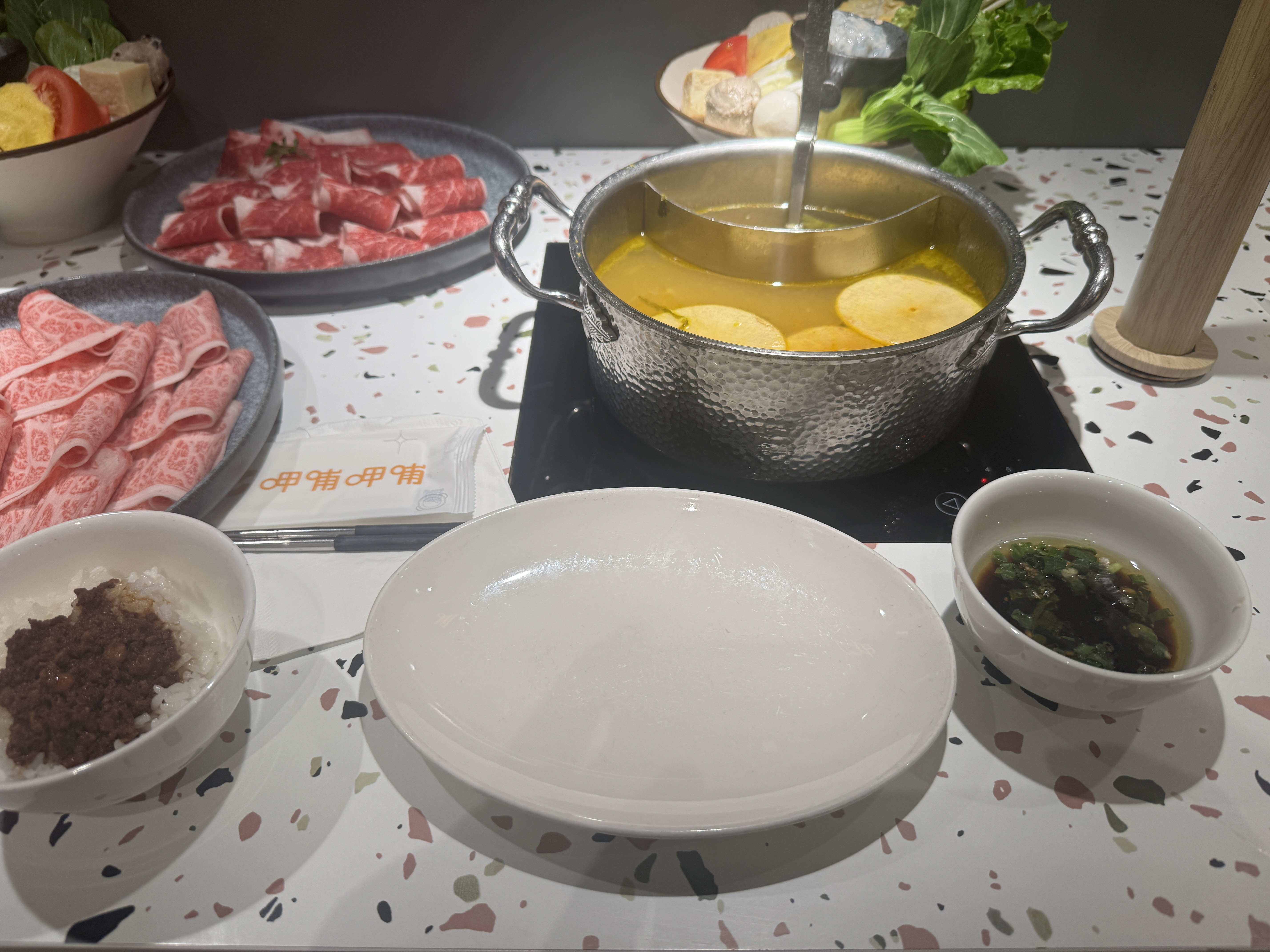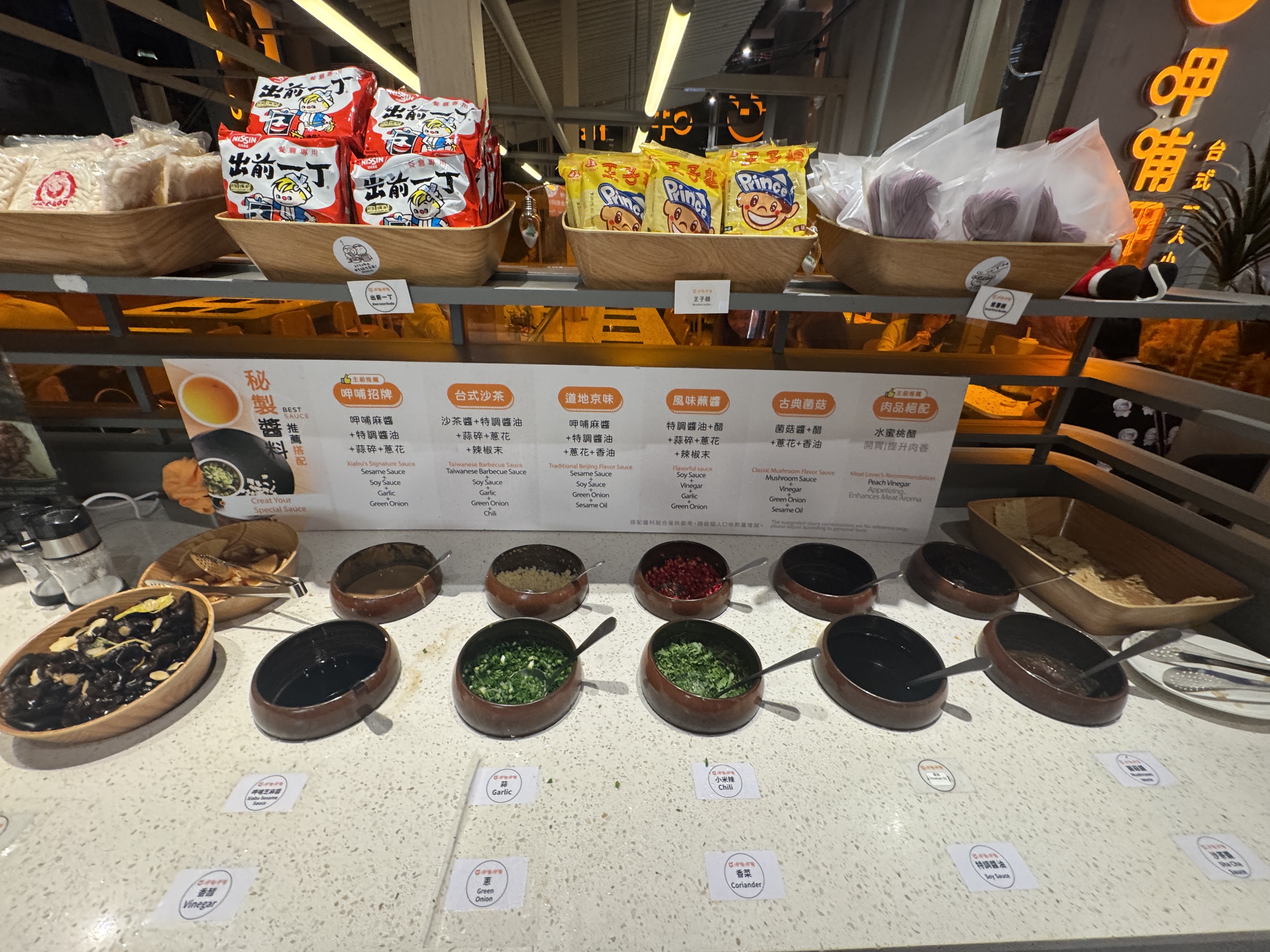 また、つけだれは自分好みにアレンジでき、「台式沙茶」(台湾バーベキューソース+醤油+にんにく+ねぎ+チリ)などのおすすめの組み合わせが提示されていて、自分で調合するのも楽しいポイントです。