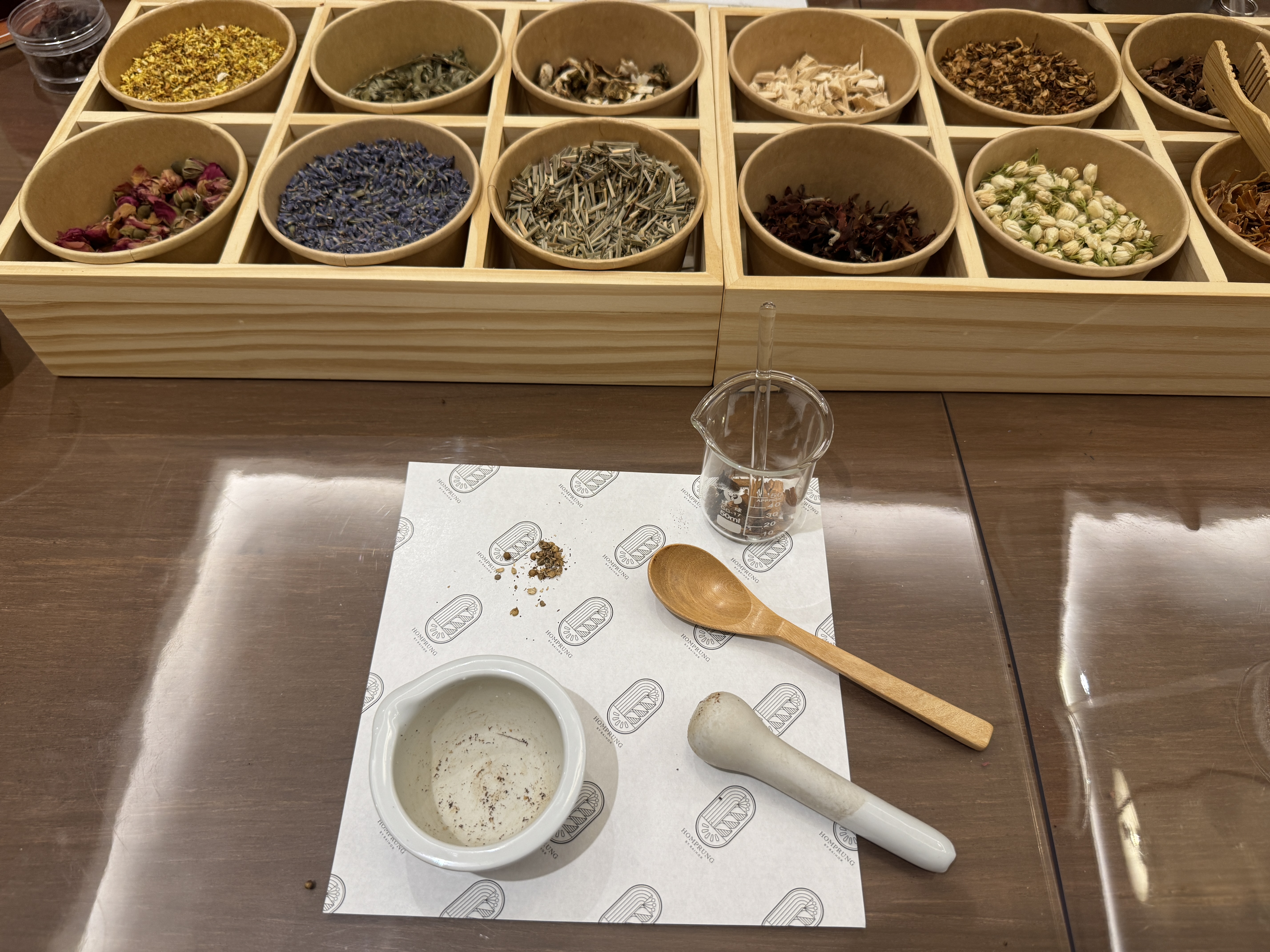 好みのにおいの素材を混ぜて簡単に作れてなかなか面白い体験でした。