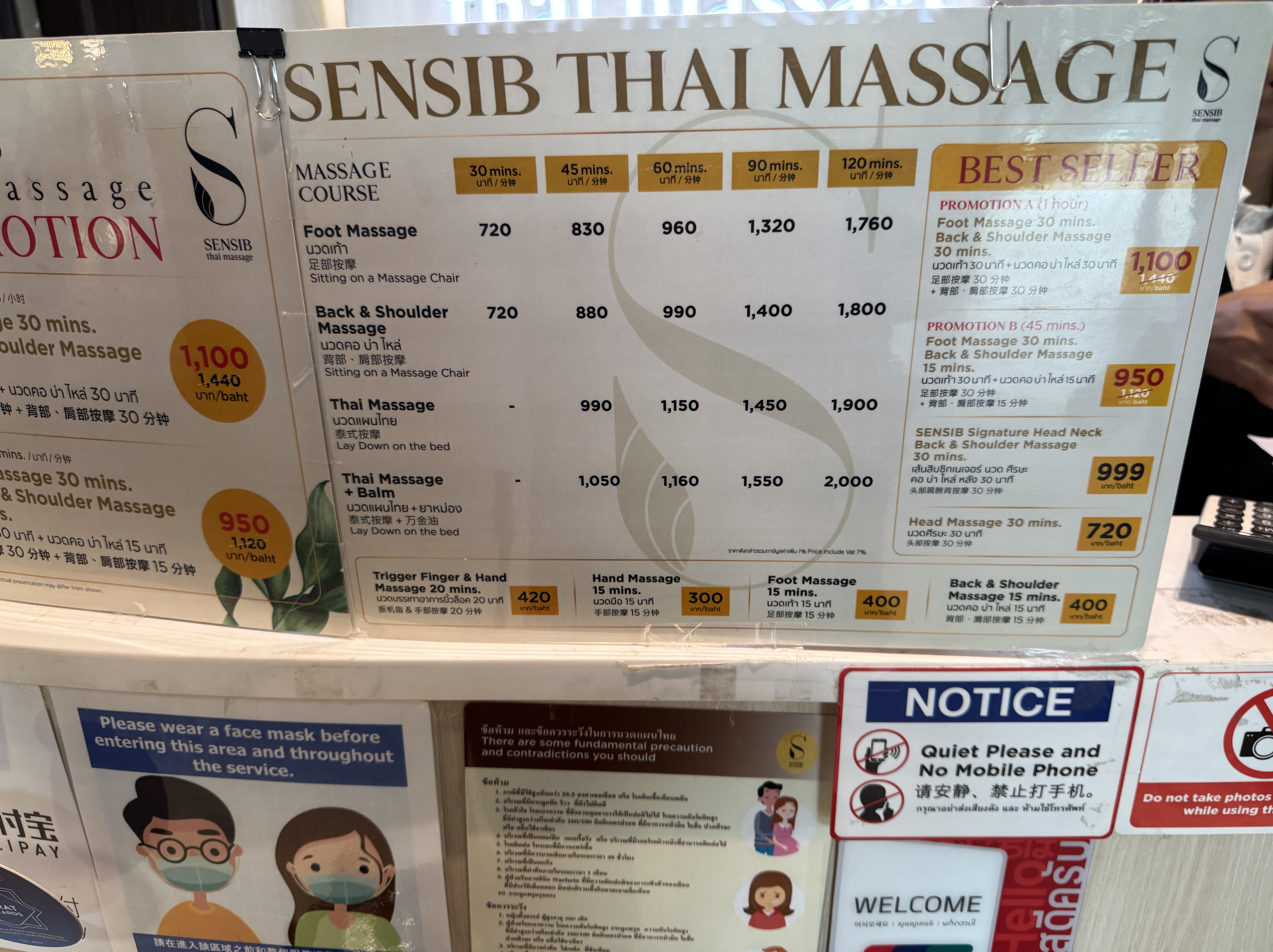 - 空港マッサージ:足60分 960THB(約4,349円)