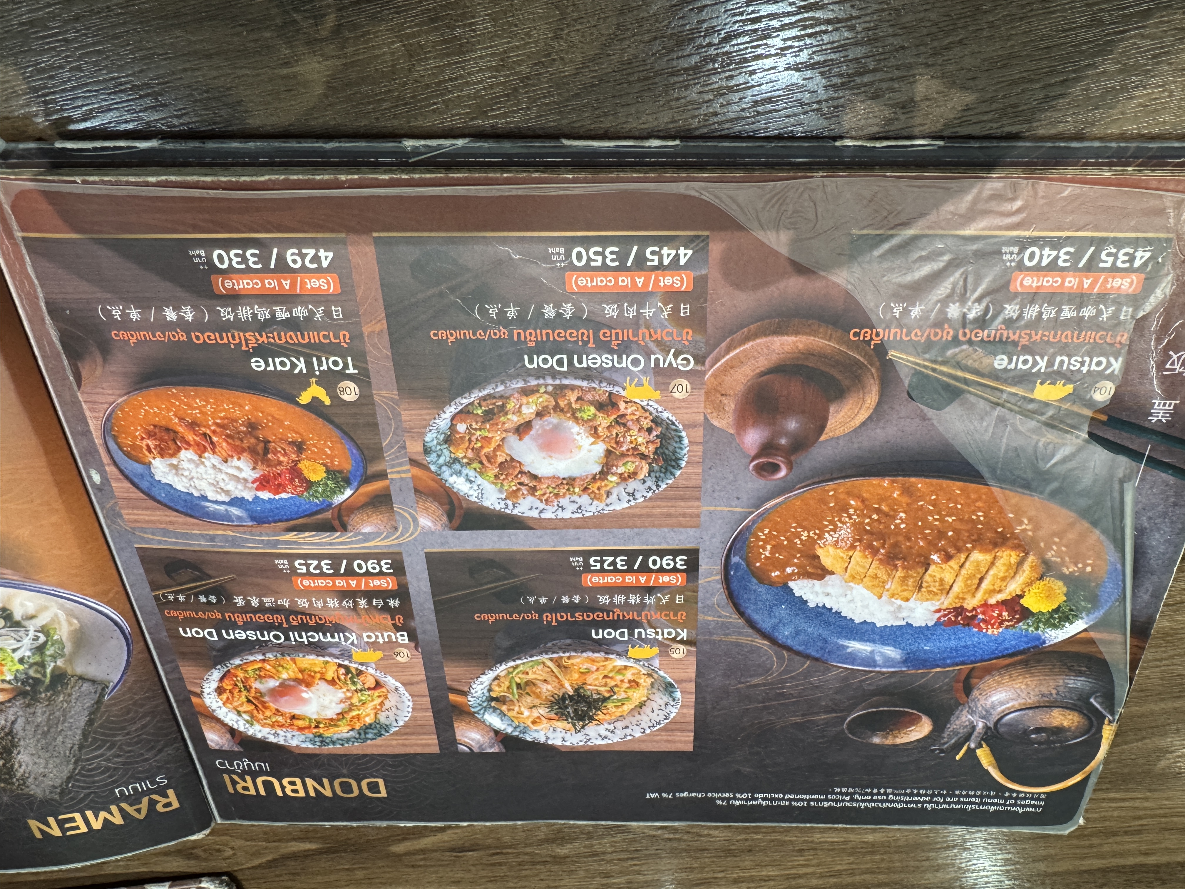 | 品名(単品価格) | 価格(THB) | JPY建て価格 |