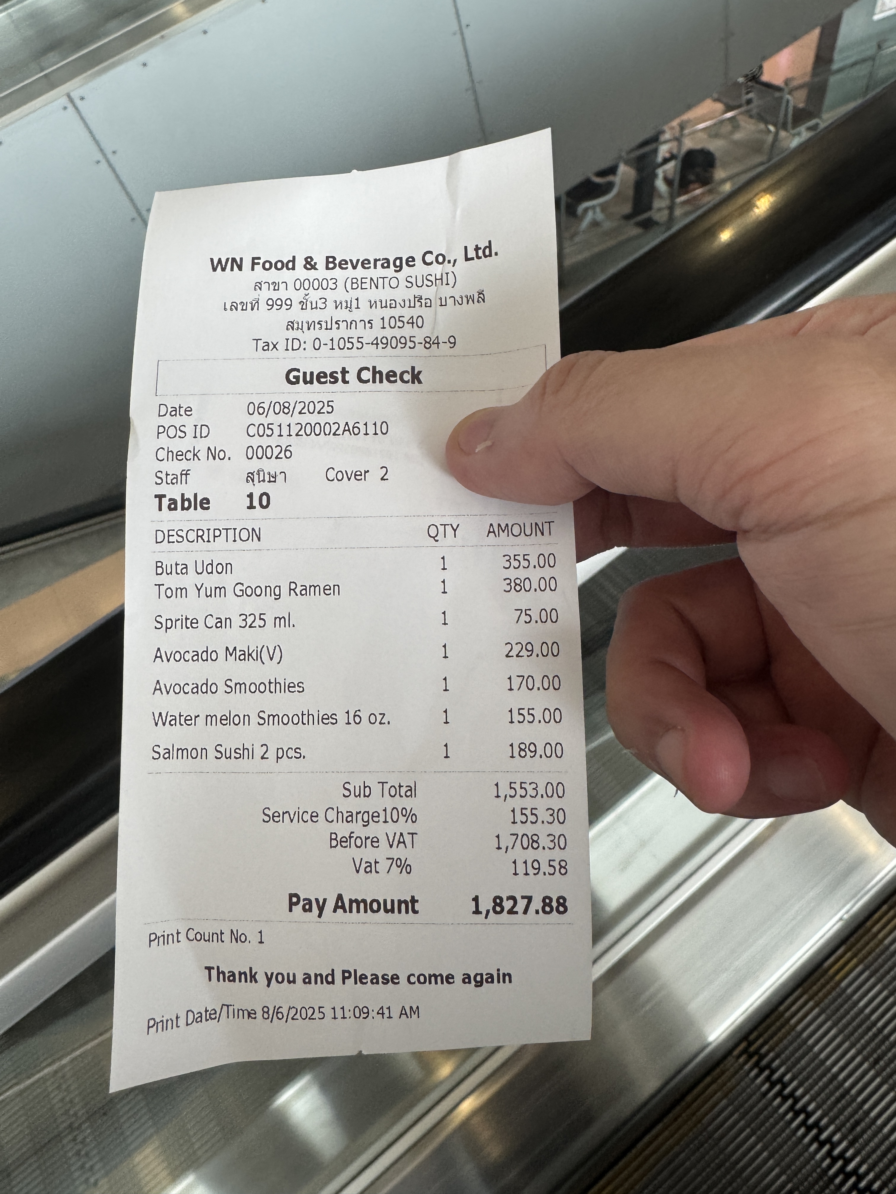 | Pad Thai(パタヤのローカルフード表記) | 280 | 約1,268円 |